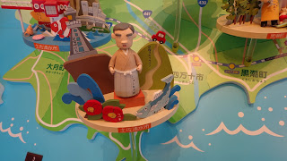 The Kochi visitor’s information center built a wonderful representation of Shikoku with figures that capture each area’s significance. The city of Kochi is along the Pacific coast in the center, while Manjiro’s hometown is towards the bottom left corner of the island.