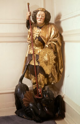 What I like most about Saint Michael is his expression of boredom–he's done this so often it's automatic. "Another day, another demon …"