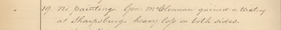 By the next day he knew “Gen McClennan [sic] gained a Victory at Sharpsburg. Heavy loss on