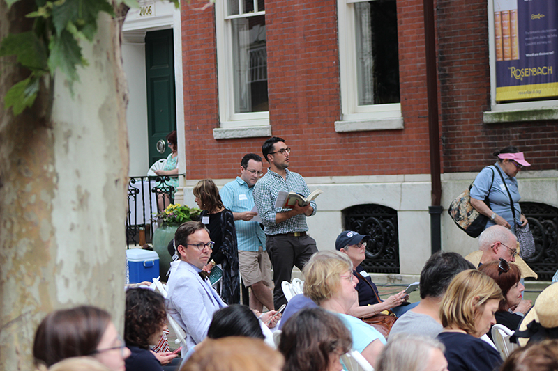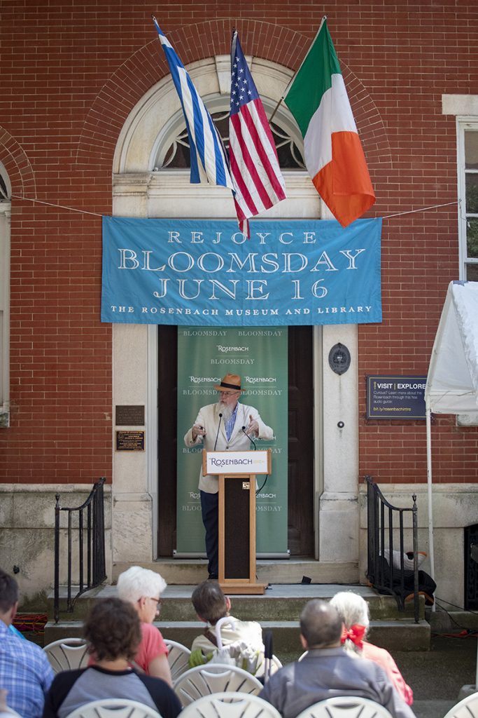 Bloomsday is a day-long public reading with musical performances that bring the epic novel to life. Joyce enthusiasts and novices alike can drop by any time to listen to the reading, relax in the beer garden with local food trucks, and enjoy free admission to The Rosenbach to view portions of the manuscript in our new exhibition, 18 Reasons to Read UlyssesPlease be aware that proof of vaccination and masks are required to enter the museumFind a list of Bloomsday FAQs here.