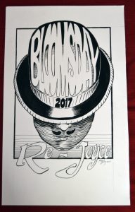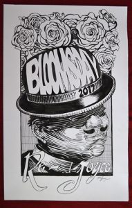 This drawing was created especially for Bloomsday 2017 at the Rosenbach by Robert Berry. Berry is a Philadelphia cartoonist and illustrator renowned for his work in visualizing the novels and short stories of James Joyce. His ongoing graphic adaptation of Ulysses, titled Ulysses Seen, premiered here at the Rosenbach for Bloomsday 2008. Since then he has lectured and exhibited his work at Bloomsdays around the world and now teaches at the University of Pennsylvania. He will be leading one of the Rosenbach’s Ulysses classes this fall. The work is ink on paper and is approximately 12×19”.