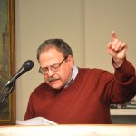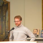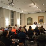 On November 18, 2017, our inaugural Moby-Dick Celebration was a rousing success. Nineteen people read eleven chapters from Melville’s masterpiece to a continuously packed room at the Rosenbach in honor of its book birthday. Dr Peter Norberg from St Joseph’s University, who is currently teaching a Moby-Dick Course here at the Rosenbach, gave a brief introduction to the novel, followed by some quotations from the novel’s “Extracts” section. Then novelist Gregory Frost kicked off the readings with the words: “Chapter One, Loomings. Call me Ishmael.” Other readers included Grover Silcox (WLVT reporter and Philly Comedy legend), Nathaniel Popkin (Philly historian and novelist), Ernest Hilbert (poet), Helen McKenna (National Park Service Ranger), Alexander Eisenthal (professor for next year’s Moby-Dick Course), members of the current Moby-Dick course, and local Rosenbach supporters and Melville fans. Folksinger Jonathan Houlon also read and led the crowd in singing sea shanties.