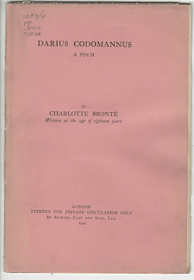 | Charlotte Brontë, Darius Codomannus: A Poem. London: privately printed, 1920. FP .W813 920 bt. The Rosenbach of the Free Library of Philadelphia |