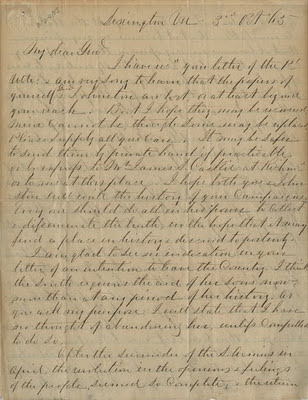 In response to Lawrence’s comments about soldiers finding peace, I began thinking of items in the collection which express similar sentiments. I found myself revisiting a post war letter written by Robert E. Lee letter to P.G.T Beauregard from October 3, 1865. The war was over and Lee was struggling to find a place for himself in society. At the time that the letter was written, he had just been selected as the president of Washington College. He writes to Beauregard about this role and the fact that he hoped to be “of some benefit to the noble Youth of our Country.”