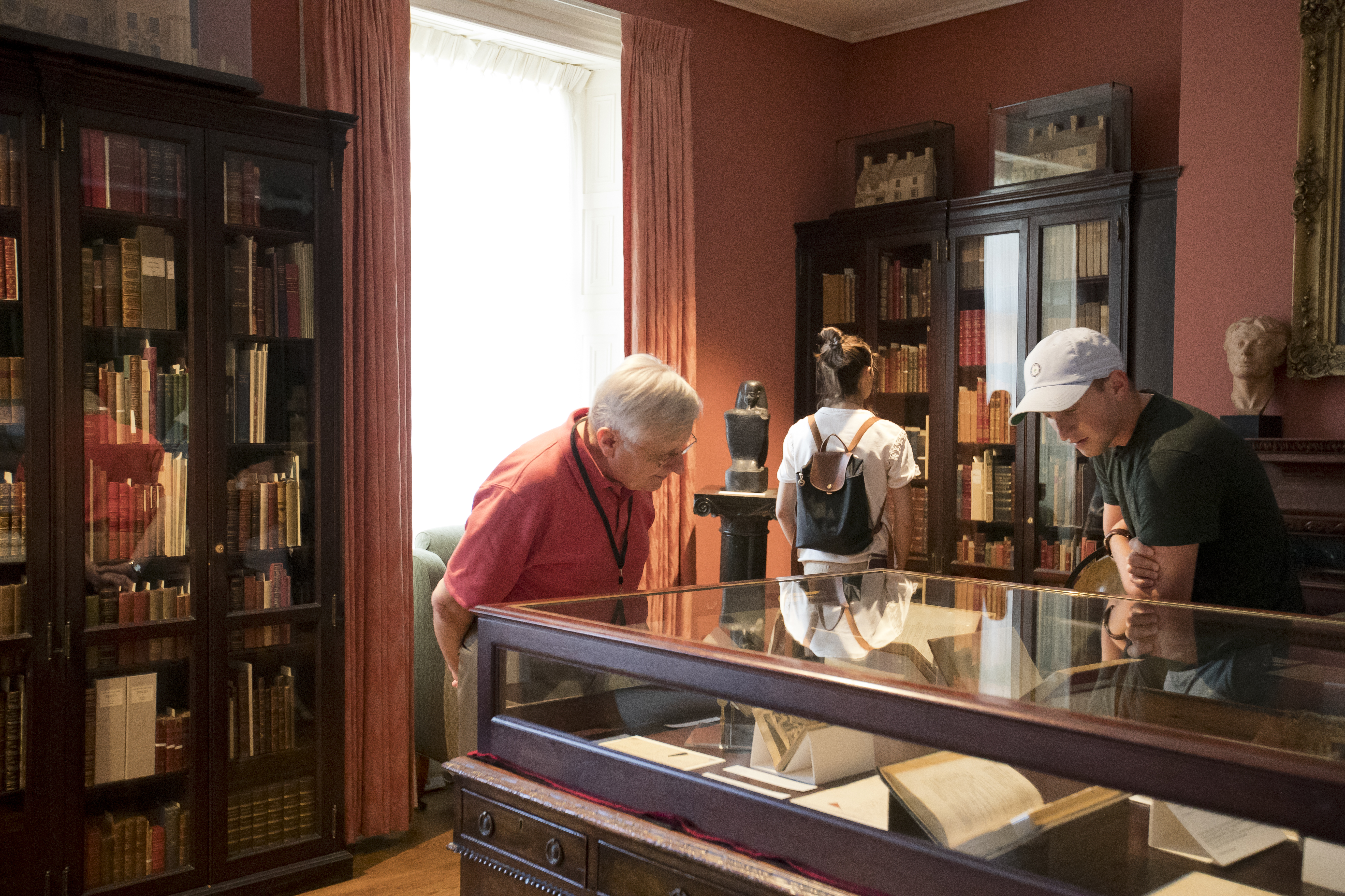 Another object, or group of objects in Dr. Rosenbach’s library that relate to David Garrick—by way of Shakespeare—are a set of model buildings (and one tree) representing places significant to Shakespeare’s life and legend. The models were made in the 1830s by an amateur actor, George Frederick Fisher, as a gift for his daughter Clara. Clara Fisher was a child actor, later successful adult actor, and Shakespeare enthusiast. The houses sit along the tops of Dr. Rosenbach’s bookcases, and include two replicas of Shakespeare’s birthplace at different times. The house immediately to the left of Dr. Rosenbach’s fireplace represents Shakespeare’s birthplace at the time of Garrick’s Shakespeare Jubilee. The Jubilee was a three day festival in honor of the centenary of Shakespeare’s birth (held five years late) in Shakespeare’s hometown of Stratford-on-Avon. Often referred to as Garrick’s Jubilee, the event featured concerts, an oratorio, poetry readings, giant back-lit paintings, lots of rain, and oddly, no play performances. That Fisher should construct a model of Shakespeare’s birthplace as it appeared at the time of Garrick’s Jubilee—in addition to ones representing it in Shakespeare’s time and his own—is a testament to how completely Garrick’s legend had become intertwined with Shakespeare’s.