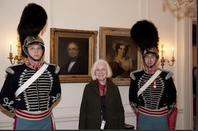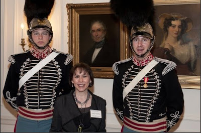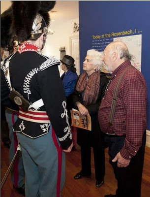 Here we have Susan Sklaroff, author of the blog Rebecca Gratz & 19th-Century America and Rosenbach docent extraordinaire! This picture also lets you see the true height of the soldiers’ plumes. Apparently they were taller than the chandelier in the parlor, so the soldiers had to carefully keep to the perimeter of the room to avoid knocking into it.