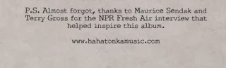 Sendak almost exclusively listened to classical music, and his favorite pieces or composers often made their way into his pictures.  The influence of music on Sendak’s art really can’t be underestimated.  How fitting that a group of musicians found their inspiration in this artist, reaffirming the creative synergy between music and art that Sendak so believed in.  He may even have been pleased that they included strings on a few songs.