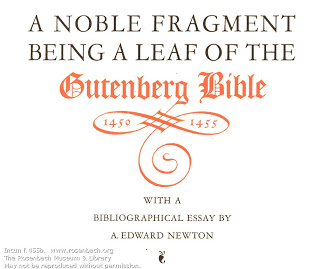 2. For those interested in more information about the Noble Fragment, please visit the McCune Rare Book and Art Collection site: http://www.mccunecollection.org/. There they have a leaf from the Gutenberg Bible as well as a view of the presentation folder and the essay by A Edward Newton which accompanied the Noble Fragment of Gabriel Wells. There are also other intering books and botanical prints by Henry Evans. There is also a section just about books printed before 1501 (incunabula) with many photos of these items.