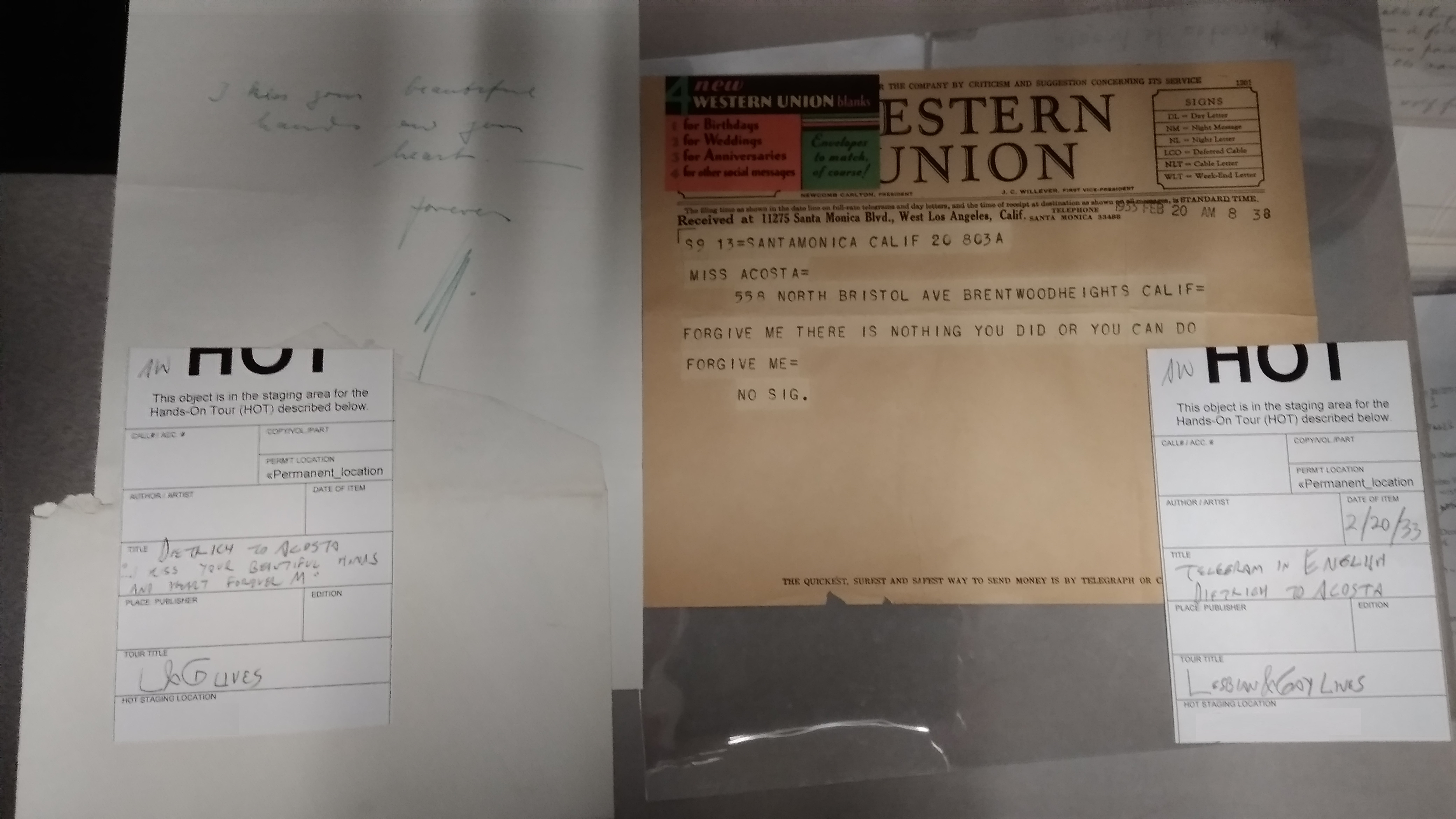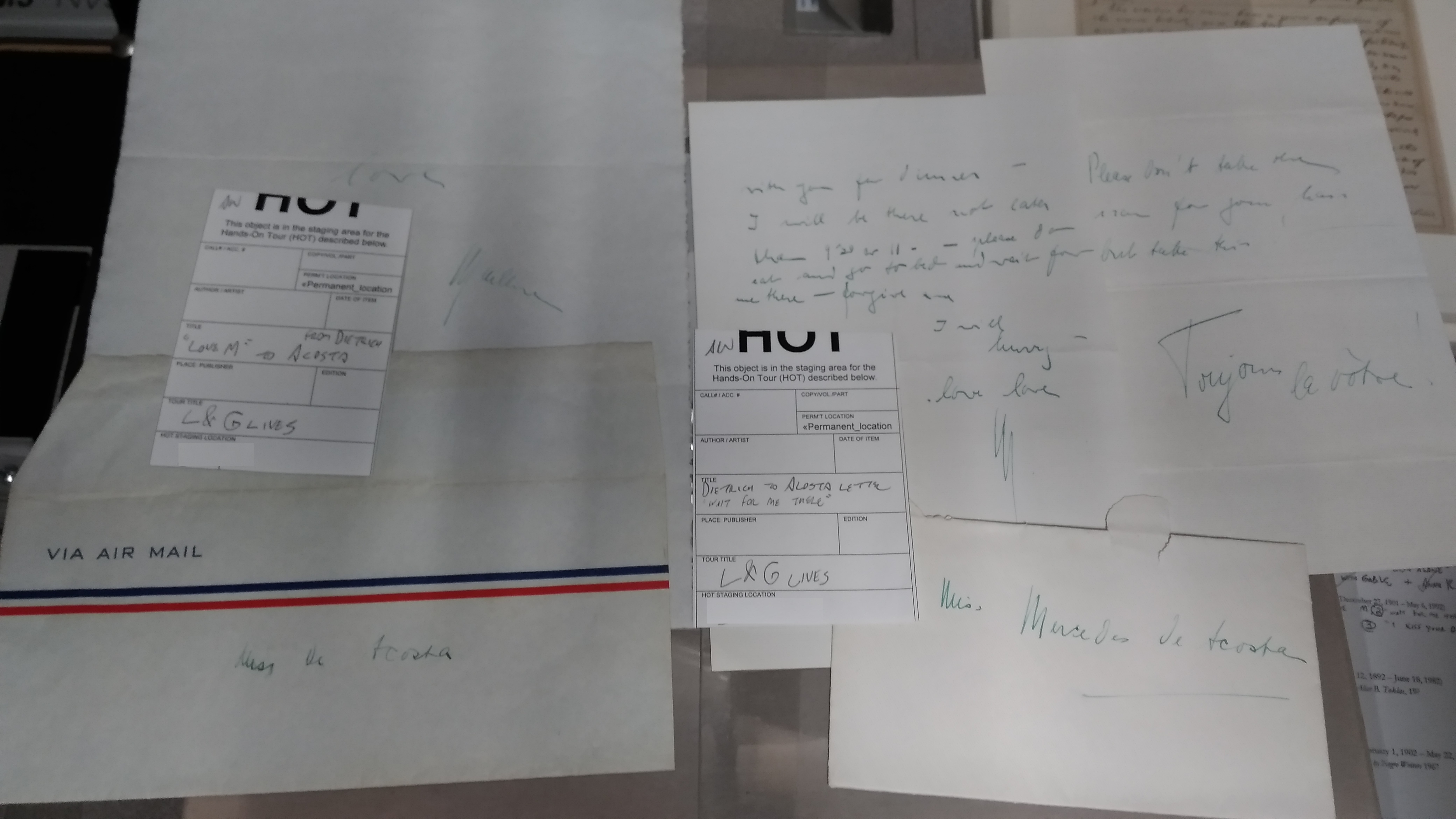 And below is one of our favorite objects at the Rosenbach: a note saying “Mon Amour!” that Dietrich sent Acosta along with one of her stockings: