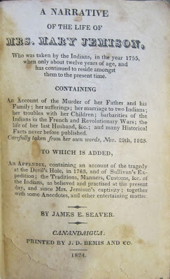 | James E. Seaver, A narrative of the life of Mary Jemison. Canandaiuga: James Bemis and Co., 1824. A 824n |