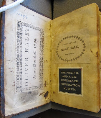 An Introduction is a slender book, but our copy was clearly well-loved as it seems to have circulated through three members of the same Newbury family–not only did Moses Hale write his name on the title page, but it also contains bookplates for Oliver and Mary Hale. I especially like Oliver hales bookplate (ont he elft) with its wonderful assortment of printers’ flowers.