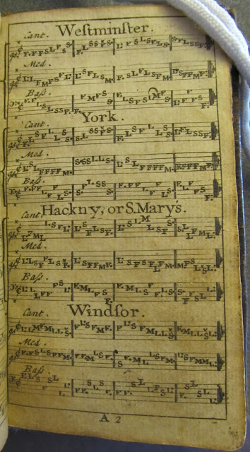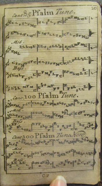 One of my favorite bits in the book is that Tufts includes some exercises before diving into the psalm tunes. I was struck by how little has changed–these mental and vocal exercises of going up and down scales and intervals is exactly what I do every Wednesday night during choral warm-ups.