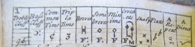 The book consists mainly of a compilation of tunes, with a section at the front explaining how to read them. The melodies are written on treble and bass staves, but instead of using conventional musical notes, Tufts uses letters indicating solfege symbols (S for sol; L for la etc.). he only used four solfege syllables: fa, sol, la, mi, with fa being used for the root and 4th; sol for the 2nd and 5th, la for the 3d and 6th and mi for the leading tone 7th. These letters had been used along with more conventional musical notes in the 1698 edition of the Bay Psalm Book, which may have inspired Tufts. For duration Tufts added a dot after the letter if it was to be held for two beats and a colon for four, as shown in his explanatory key below.