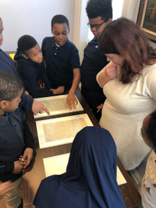 The school partnerships happen over a series of months starting with Emilie visiting the children’s classroom and leading a discussion about what it means to be a collector, what the students collect, and why it is important to collect history. When the students come to The Rosenbach they have developed a sense of connection, with not just the museum, but with The Rosenbach brothers. “Once a school group came thinking they were going to meet the Rosenbach brothers and even sent the brothers thank you notes for the visit.” At the end of the semester the students give a speech about what they have studied at The Rosenbach before family and friends.