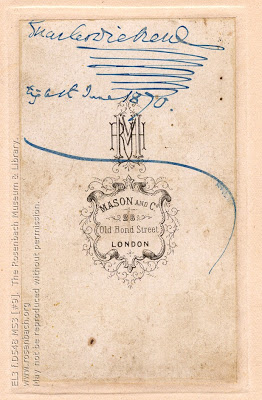 Moving on, the Rosenbach has a copy of the last photograph ever taken of Dickens. This one also claims to have Dickens’s last known signature on the reverse, supposedly written just hours before his death on June 9, 1870. So maybe we can leave off with that image as a more fitting, or perhaps less frightening, tribute to the great writer.