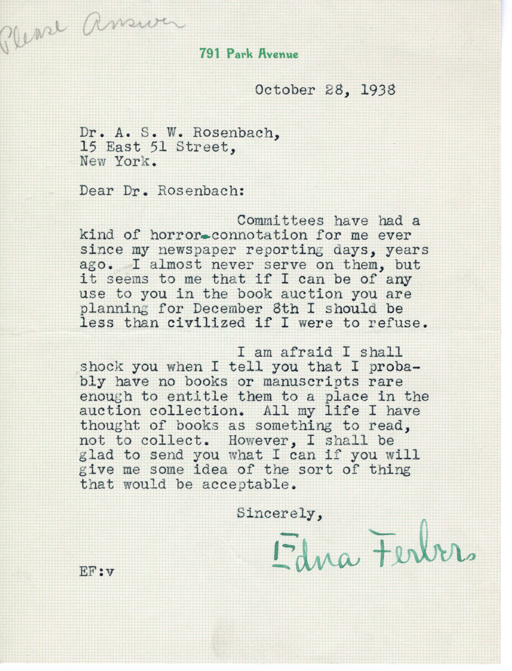 Read more about Dr. Rosenbach’s charity auction and view photos of related documents from our collection here.