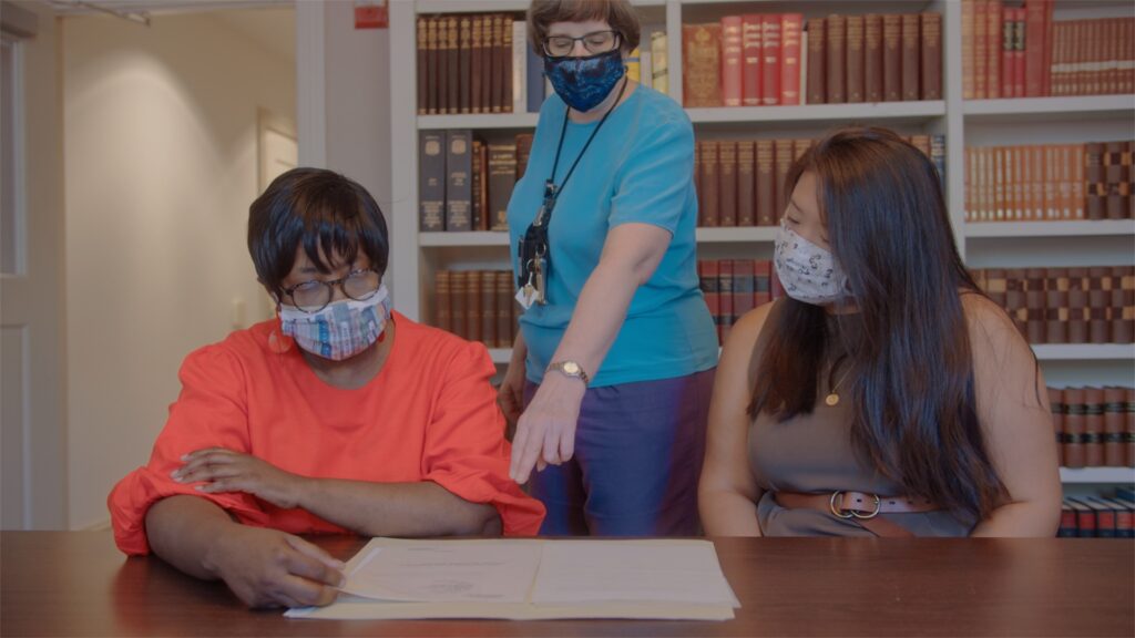 Elizabeth E. Fuller hosts researchers visiting the Rosenbach reading room.