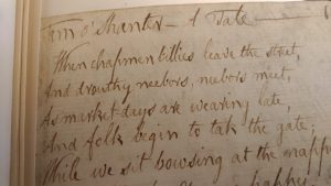 Considering the bacchanalia that takes place in the Alloway Kirk in Burns’s poem—and the desperate Ichobod Crane-style escape Tam makes over the Doon—Cardonnel-Lawson’s image is disappointingly tranquil, though useful for setting the scene. Here’s something that should give you the appropriate chills—whether you’re a fan of Robert Burns, classic tales of the uncanny, or both: the first lines of “Tam o’Shanter,” in Burns’s hand, from the Rosenbach’s manuscript:
