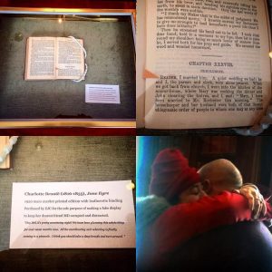 Love is in the library: over the holidays, two visitors got engaged while on a tour of the historic house. Admittedly, some of us were in on the plan. One of our artistic staff members created a library display case with a copy of the bride-to-be’s favorite book, Jane Eyre, opened to the page with the famous line “Reader, I married him.” One of our knowledgeable guides asked her to read aloud the label, which included some text that is decidedly not part of our collection. Then the groom-to-be popped the question. Reader, she said yes.