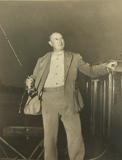 Dr. Rosenbach went to Strathmere for relaxation, extensive entertaining, and his favorite pastime, fishing. Here is Doctor R. aboard his boat, the First Folio.