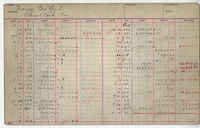 Any person who made a purchase at the Rosenbach Company on credit had an accounts receivable card which listed dates and amounts of debits (purchases) and credits (payments). This card is one of many from Mrs. George D. Widener which are currently on display in Titanic: The Rise of Rosenbach.