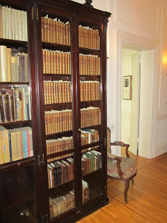 The Holford collection of Defoe materials is housed in the third floor hallway. The bindings for this large matched set are made of Russia leather. Russia leather has a distinctive aroma, which comes in large part from the birch-bark oil used in its production. It smells of wintergreen and the effect of whole cabinet of books is quite pronounced when the glass doors are opened.