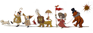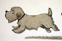 To add to all the other exciting news circulating around our collections recently, we’ve gotten word that a mural painted by Maurice Sendak on the wall of a New York apartment in 1961 will finally be arriving at the museum in mid-January 2011! Its new permanent home will be the Sendak Gallery on the first floor of the museum. This is the homestretch of a project that’s taken more than three years, but will ultimately share with our visitors the only surviving mural painted by Sendak, as well as the longest (at about 13 feet long) and heaviest (at nearly 800 pounds!) piece in our Maurice Sendak Collection. A 33-year-old Sendak painted the mural for his friend Roslyn Chertoff and her two children, Nina and Larry. The mural depicts a procession of classic Sendakian characters (almost all of whom show up at some point or another in his picture books and other drawings): His dog, Jennie, is in the lead, followed by two boys playing a drum and a trumpet and guiding a lion on a chain; following them is a little girl in an oversize red dress leading a bear on a leash, while a golden sun shines on them from the upper right corner. The whole assembly is colorful, rambunctious, and lively (not to mention well attired, particularly their various hats). A few years ago, Nina and Larry generously donated the mural to the Rosenbach. Judy Guston, Curator & Director of Collections at the museum, went to New York with a team of conservators from Milner + Carr to see the mural for herself: “I think the most striking thing about the mural was its location in a room that overlooked NYC’s Central Park. The light streaming into the high windows, while curators usually think of it as bad for art, lent a sense of joy and movement to the work, almost leading the procession of characters outside into the park, which is what I was convinced the work was supposed to do—to lead the children from their bedroom outside into a place of adventure and play.”