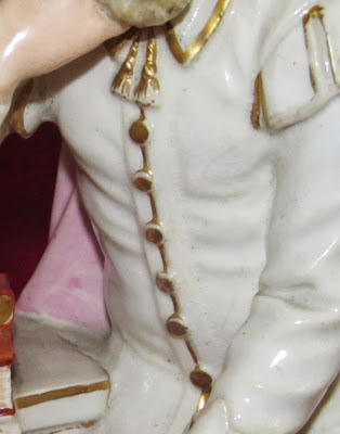 gilt soft-paste porcelain figurine, ten inches tall, forms a pair with a