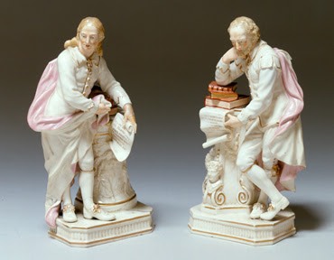 | Derby Porcelain factory, figures of Milton and Shakespeare. Soft paste porcelain. ca 1780-1810. Rosenbach Museum & Library. 1954.2109 &2110 |