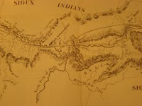 If you need some tips, you can always check out Charles Preuss’s maps of the trail,featured in the exhibit, which provide useful information on water, fuel resources, and the disposition of local Indian tribes. A very small detail is shown at the left. Sarah Vowell actually a did a piece on Preuss for This American Life which is well worth a listen. Anyway, I briefly toyed with the idea of putting a kiosk with Oregon Trail in the exhibit, as yet another way in which the West has permeated American culture, but decided it was too much of a stretch. But you can enjoy it online. I also just heard this week that someone has come out with a faux movie trailer based on the Oregon Trail game. I took a look and it’s pretty funny, although to warn you there are a couple of very minor scatological references.