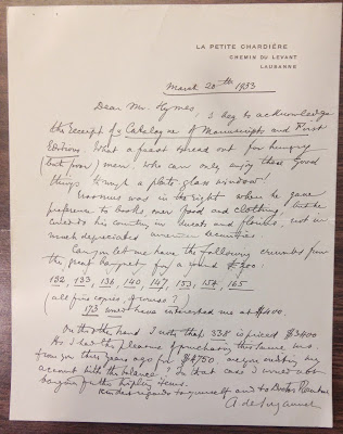 wrote to Rosenbach salesman Harry Hymes in response that the catalogue