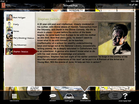 There is, as they say, an app for that: in 2010, the Ulysses “Seen” project released the first chapters of Ulysses on iTunes, with a Reader’s Guide and bold comic-book-style illustrations to help make the novel accessible. But in its early edition, the app included a few illustrations that complemented the novel’s frank, earthy approach to the body–and came up against Apple’s rules against images containing nudity. It’s perhaps a stretch to say that the app was “banned:” it was made available with a few minor changes, such as cropping a female character’s portrait and preserving Buck Mulligan’s modesty, and is still available for download. But this medium makes an unusual addition to the long list of lines Ulysses has crossed.