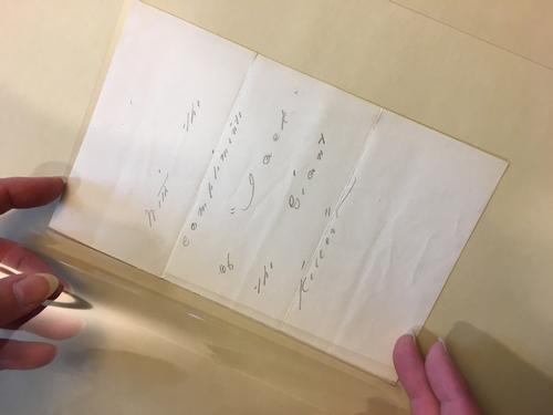 What can compare, though, to seeing the handwriting itself? I have two recommendations for the reader who is moved by the photographs in this post, all of which are of manuscripts owned by The Rosenbach and featured in their Dickinson tour. First, check out one of the Free Library’s copies of The Gorgeous Nothings: Emily Dickinson’s Envelope Poems, which beautifully reproduces—in full color, large scale, and a careful layout—facsimiles of the 52 poems that Dickinson composed on envelopes. Second, if you’re local to the Philadelphia area, join us at The Rosenbach on January 24, 2020, for the next occurrence of “The Modern Emily Dickinson: The Anti-Belle of Amherst.” Just remember to bring a handkerchief.