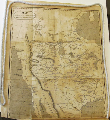Though an inaccurate and incomplete account, the book did provide the public with some information about the Western Territory. A large section is dedicated to a summary of Lewis’s “Estimate of the Eastern Indians,” with brief descriptions of the many tribes they encountered on the eastern side of the Rockies, though some sections of the “summary” are actually taken from other texts about different tribes Lewis and Clark hadn’t even encountered. Five engravings of Indians were created specifically for the book, including the two pictured of a Sioux Queen and a Sioux Warrior. The fold-out map just inside the cover was drawn for the book, and though inaccurate was the earliest published map based on Lewis and Clark’s actual route.