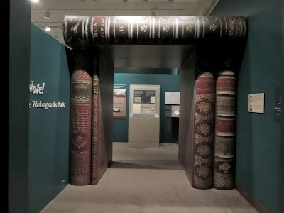 If you find yourself down in the D.C. area between now and January 12 you can swing by and check out the exhibit (and say hello to our letter). Mount Vernon is privately run, so it is open during the shutdown. Here’s what the entrance to the exhibit looks like–I thought the giant books were a really fun idea.