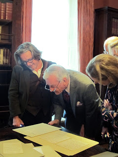 Of course we visited a few pages of our Ulysses manuscript. Our Abbey Theatre guests reminded us that John Quinn not only defended Ulysses but also defended the Abbey Theatre from an obscenity charge in America, incurred while touring The Playboy of the Western World by John Millington Synge around 1911-1912. Quinn was successful in releasing them from the charge; more successful than he was in defending Ulysses, Kathy noted.